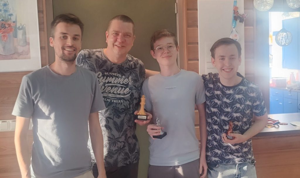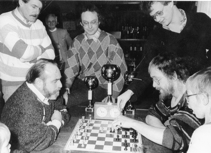 V.L.N.R: De destijds nog heel erg jonge (oud) voorzitter Jurjo Hagen, met naast hem (in ruitjestrui) de toen nog eveneens jonge Dick Jansen. De witspeler is Jack Thielen, tegenover hem zit Peter van den Berg met links van hem, zoon Roel.