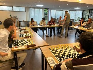 Wat is nou mooier om het schaakseizoen te beginnen met een simultaan tegen de sterkste clubspeler, Rijk-Pieter Hofstede.