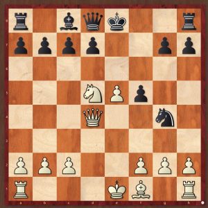 Na 10 zetten stond de volgende stelling op het bord en geeft Fritz 19 +4,5 voor wit.